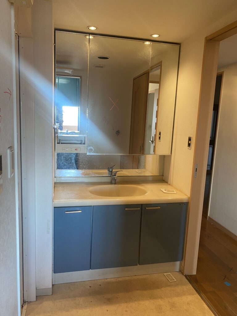 この様な洗面化粧台でしたが、お客様は「家族の人数が減って大きすぎる」