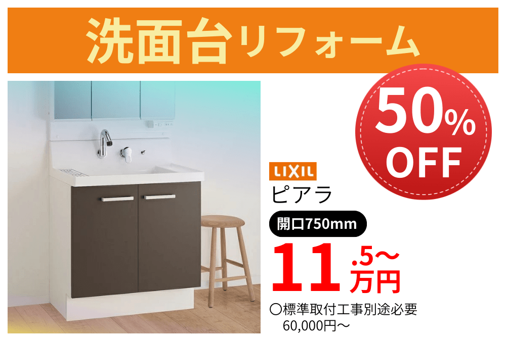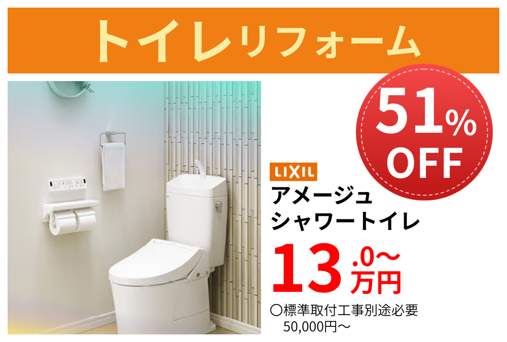 今だけの期間限定で、トイレ・洗面台リフォームを特別価格でご提供するキャンペーンを実施中です。今人気の設備をお得にリフォームできるチャンスです。ぜひこの機会にご検討ください。