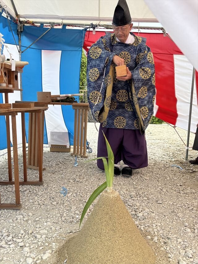地鎮祭をいつもの四日市は鳥出神社の喜多嶋神主にお越し頂き