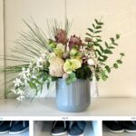 ハンガー掛けと意味不明な天井吊り棚。バナナ置いたりコーヒーの粉引きのパックを積み上げたりしてますが