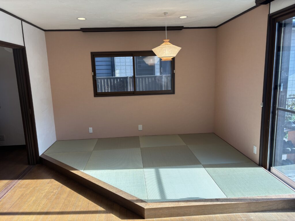 他にはお客様支給の本棚の設置と畳の表替え、照明とコンセントを交換して工事完了となりました。